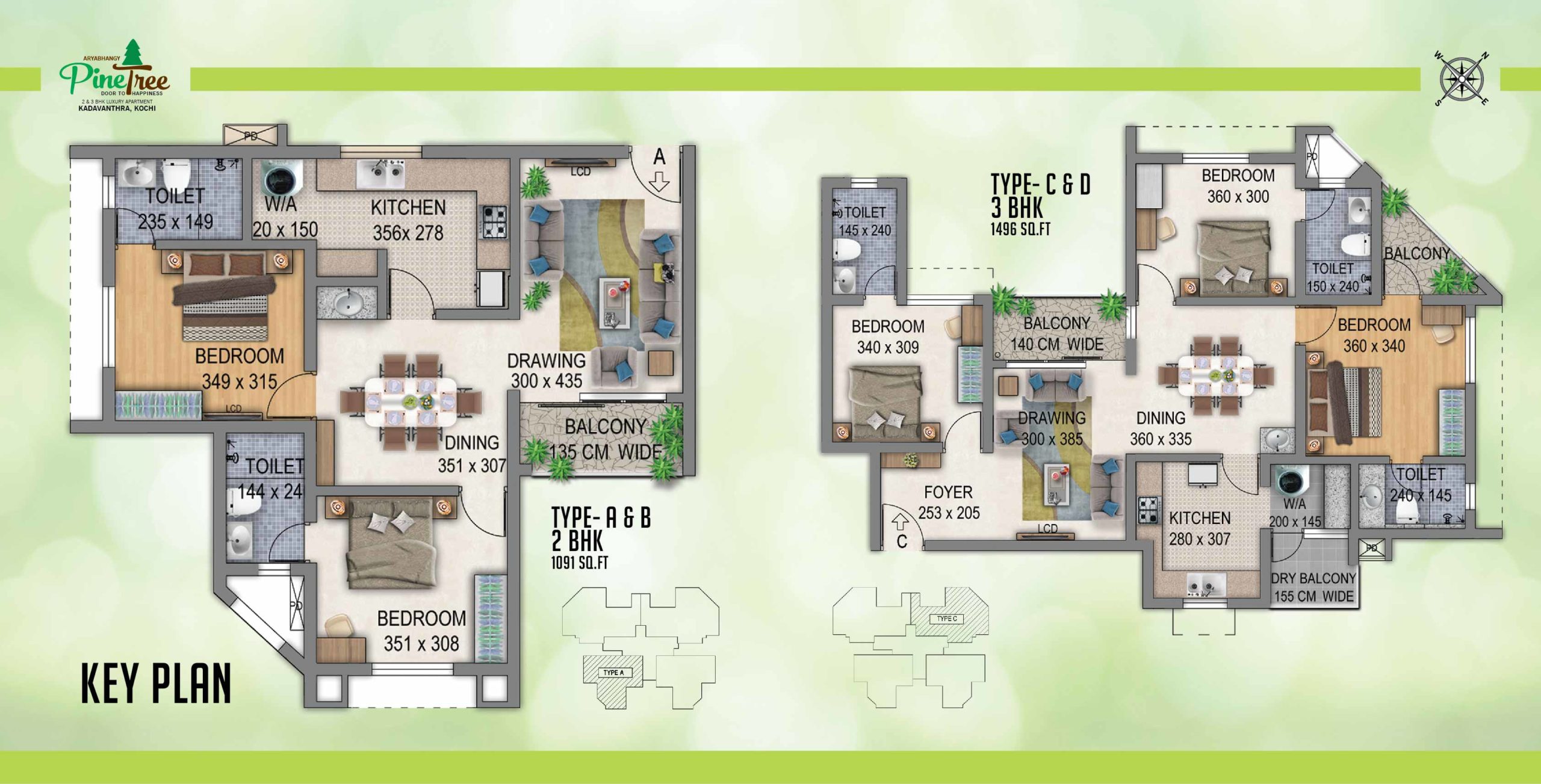 ARYA BHANGY “PINE TREE” – offers a good opportunity for the home buyers who want to live in city limit but away from the hustle and bustle of city life. Located in one of the Green Belt of city, Gandhi Nagar and very much easily accessible to Kadavanthra metro station, KV School, South Railway Station, Indira Gandhi Hospital, Kadavanthra market, etc.. The site is blessed with a wide road in front side. Pine Tree offers 3 BHK ready to occupy luxury flat of 1496 Sqft.