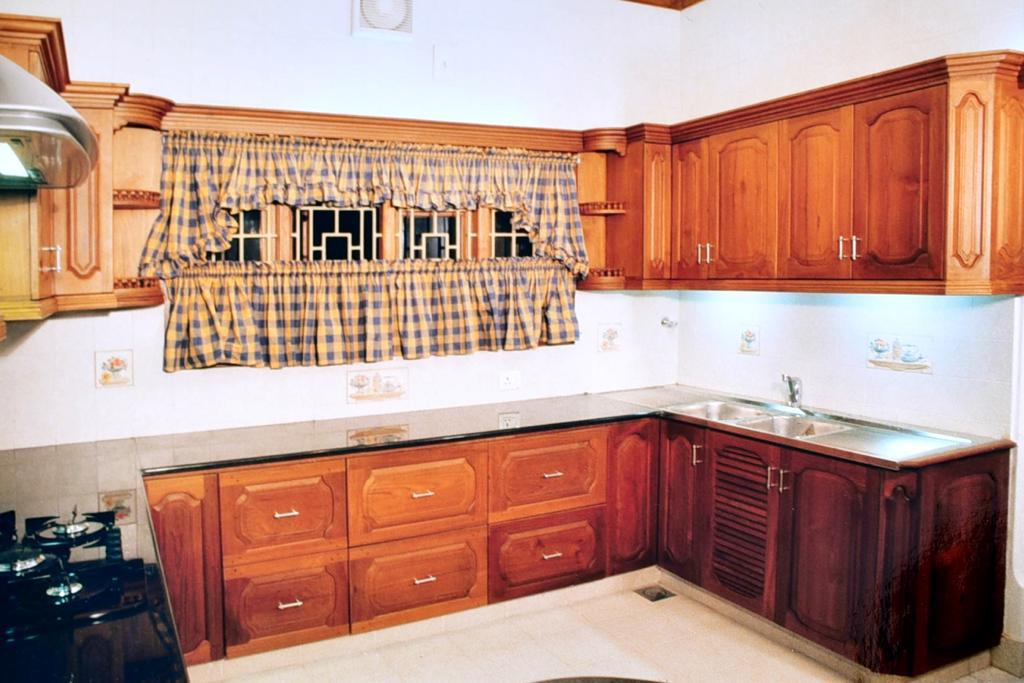 Kitchen: 1 indoor Kitchen with cupboards, hood and hob with store room (Also, 1 outhouse work area & kitchen for servants use)